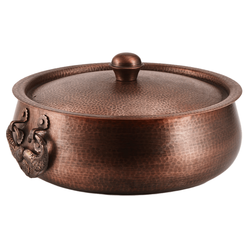 隆顺铜艺火锅盆是一款兼具传统工艺与现代实用性的火锅锅具,33cm的鸳鸯锅设计,让你可以同时享受两种不同口味的火锅,适合家庭聚会或朋友聚餐。其纯紫铜材质确保了火锅的良好导热性,能够让食材快速熟透,锁住肉质的鲜美。